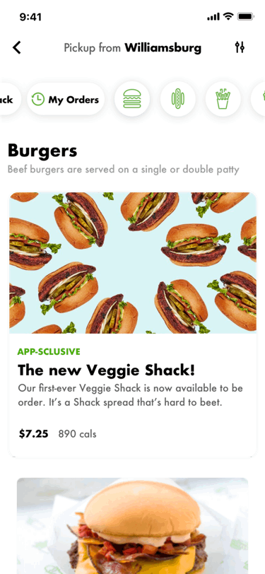 Shake Shack uses OLO, a 3rd party digital ordering platform, to store all of their menu data. Having to rely on the format and/or quality of the data receieved from OLO effected some user flows and required us to alter some of our user flows.